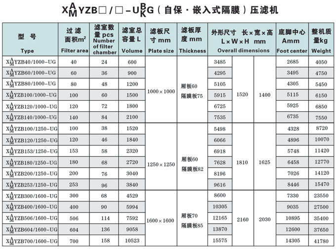 技术参数: 由于同一型号压滤机配置有很多种,图表中的技术参数只能作为参考,所以具体参数需要根据客户的实际需求,以恒达公司技术部提供的数据或图纸为准。